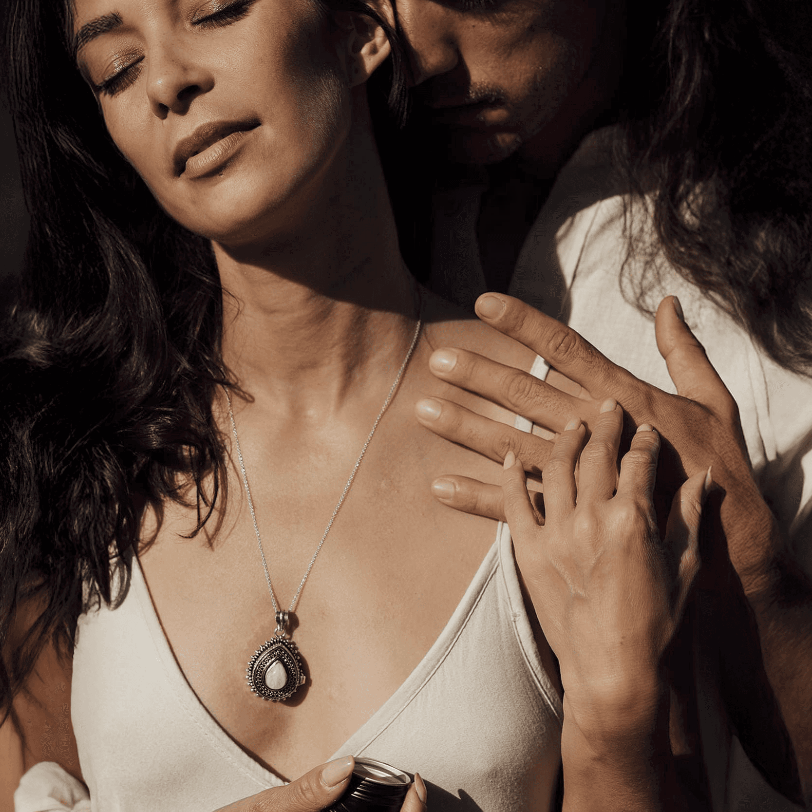 Desliza el dedo o la yema tibia sobre el perfume sólido y aplícalo en puntos de pulso como muñecas, cuello o detrás de las orejas.